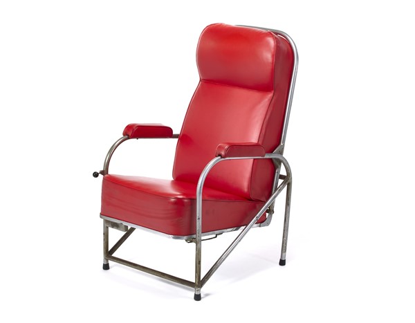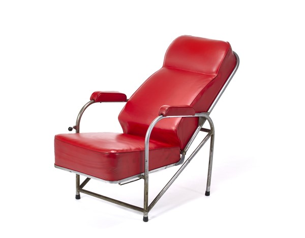 Poltrona reclinabile con struttura in tubolare in metallo cromato, rivestimento in similpelle rossa. Italia, anni '20/'30. (l cm 58,5, altezza e profondità variabili) (difetti)