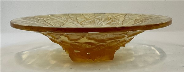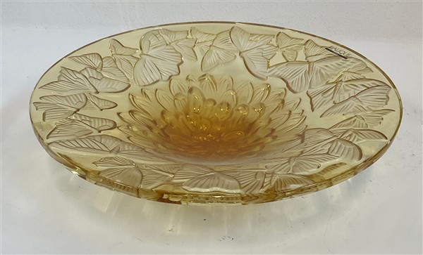 Lalique Centrotavola in vetro arancio trasparente pressato in forma con farfalle