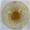 Centrotavola in vetro arancio trasparente pressato in forma con farfalle e fiori. Francia, seconda metà secolo XX. Firmato a punta. (h max cm 8,5; d cm 32)
