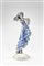 Scultura raffigurante danzatrice modello "6229". Esecuzione Goldscheider, Austria, anni '30/'40. Ceramica modellata a colaggio dipinta in celeste e policromia sotto vetrina. Marchio della manifattura e numerali sotto la base. (h max cm 25) (lievi difetti e restauri)