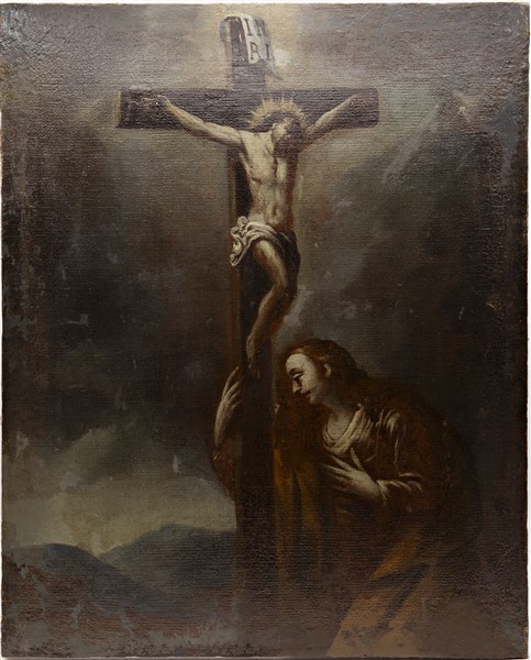 Ignoto Antico dipinto raffigurante "Cristo crocifisso e la Maria Maddalena" ol
