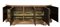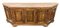 Credenza scantonata in legni vari a cinque ante pannellate con riserve mistilin