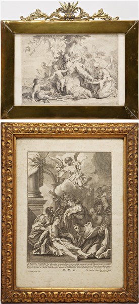 Lotto composto da due antiche incisioni all'acquaforte su carta a soggetto reli