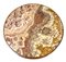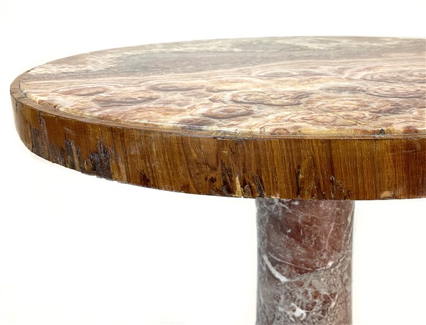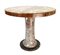 Tavolino da salotto tondo con fusto e base in marmi differenti, piano in alabas