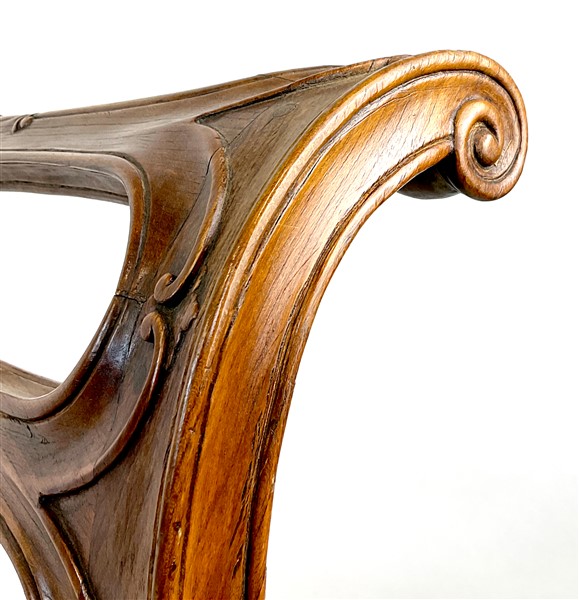 Panchetta da muro in legno intagliato e traforato con gambe mosse e braccioli c