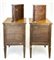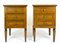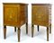 Coppia di comodini lastronati, filettati e intarsiati in legni di varie essenze
