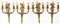 Gruppo di quattro appliques a tre luci in bronzo dorato con bracci e sostegni s