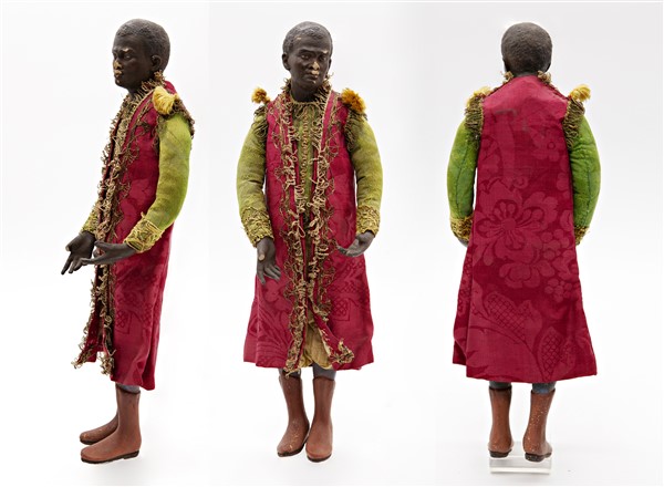 Arte napoletana, secolo XIX. Tre figure di mori da presepe, parti in legno, in