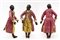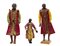 Arte napoletana, secolo XIX. Tre figure di mori da presepe, parti in legno, in tessuto, raso e applicazioni in filo di metallo dorato (h. max cm 33) uno su base in legno non pertinente (difetti e mancanze)