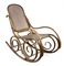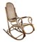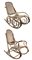 Lotto di due sedie a dondolo in faggio curvato con sedute e schienali in paglia