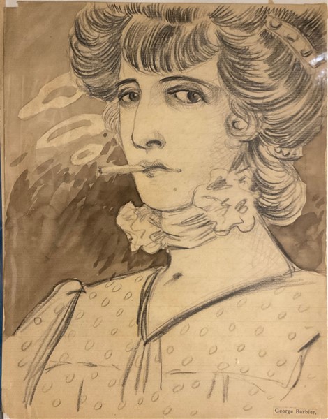 Busta contenente quattro disegni a tecnica mista su carta raffiguranti "figure femminili" di diversi autori e misure. Di cui due attribuiti a Georges Barbier (difetti)