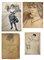 Busta contenente quattro disegni a tecnica mista su carta raffiguranti "figure