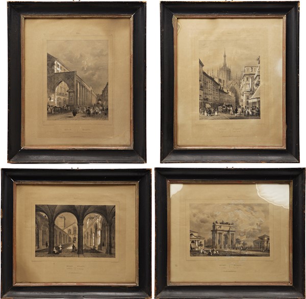 Lotto 282 | Gruppo di quattro stampe monocrome riprese a biacca raffiguranti scorci di Mila