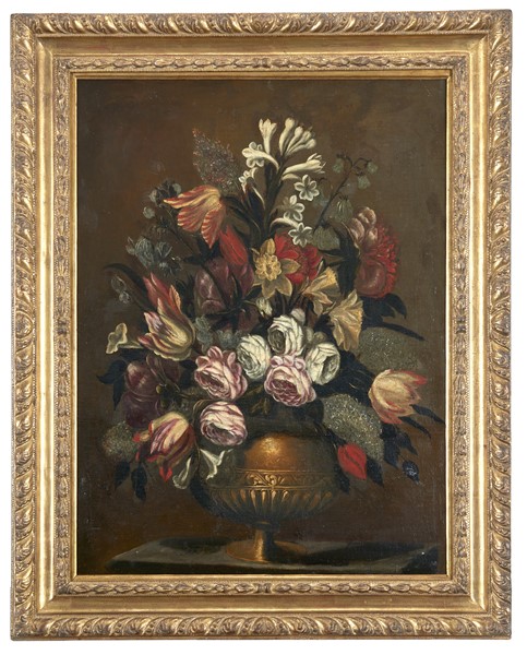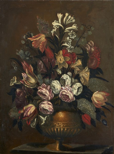 Lotto 284 | Scuola del secolo XVIII "Composizione con vaso di fiori" olio su tela (cm 78,5