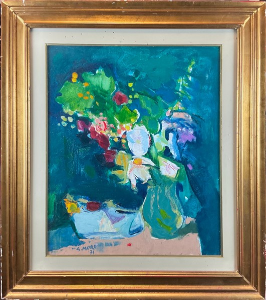 Gino Moro "Vaso con fiori" 1971, olio su tela (cm 55x45) firmato e datato in bas