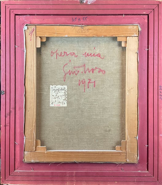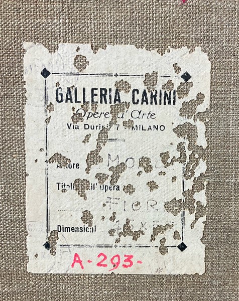 "Vaso con fiori" 1971, olio su tela (cm 55x45) firmato e datato in basso a sinistra; autenticato dall'artista, datato ed etichetta della Galleria Carini, Milano al retro