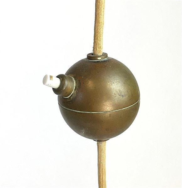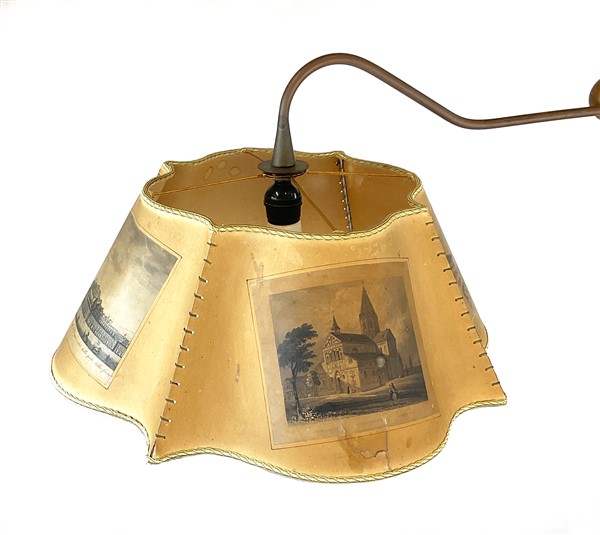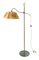 Lampada da terra in ottone con braccio regolabile e paralume sagomato in carton