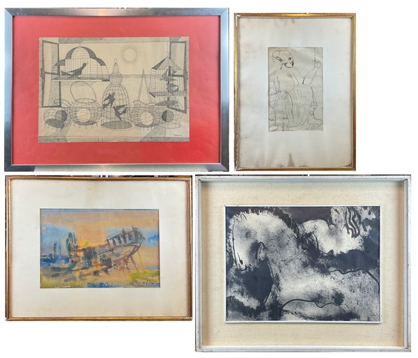 Lotto composto da due chine su carta e due tecniche miste su carta, di autore,