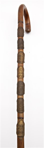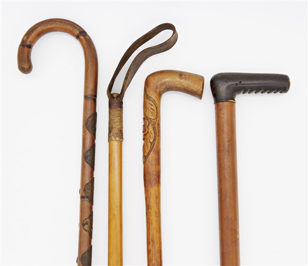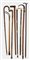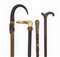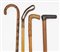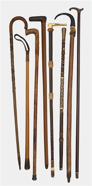 Lotto composto da sette bastoni da passeggio ed un frustino in legno intagliato