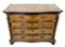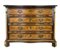 Canterano in noce lastronato e filettato in radica e in legno chiaro, fronte mo