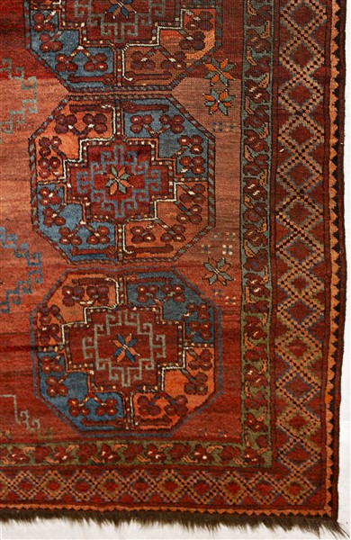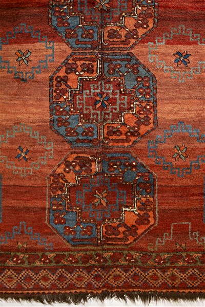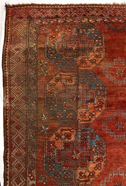 Tappeto Beshir, Turkestan occidentale, fine secolo XIX. Decoro con Gül di grand