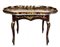 Tavolino da salotto in legno e papier-machè laccato con decorazione floreale in