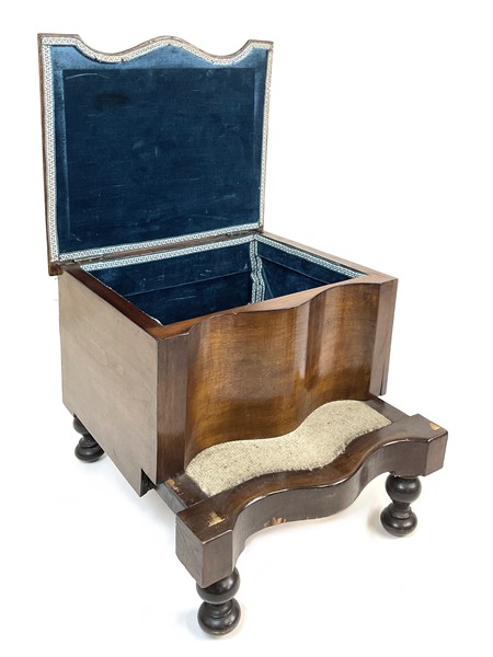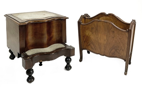 Lotto composto da una scaletta da biblioteca con gradino estraibile e piano ribaltabile ed un portariviste a doppio scomparto (cm max 45x43x42) (difetti)