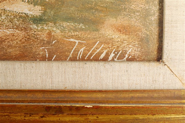 Guido Tallone "La casa sul fiume" olio su tela (cm 45x55) Firmato in basso a de