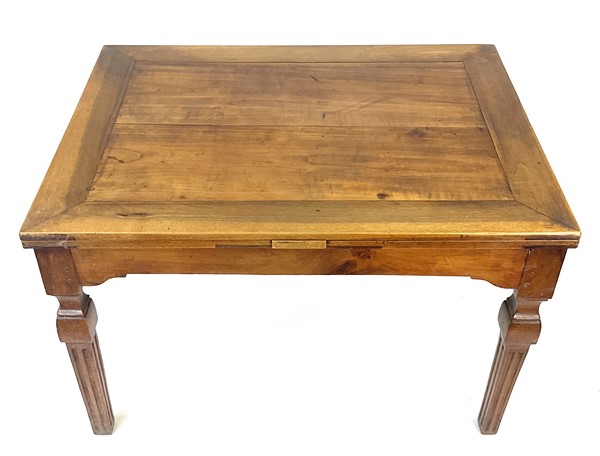 Tavolo allungabile in noce con gambe scanalate e doppio allungo a tiro. Secolo XIX (cm 120x78x90) (difetti e mancanze)