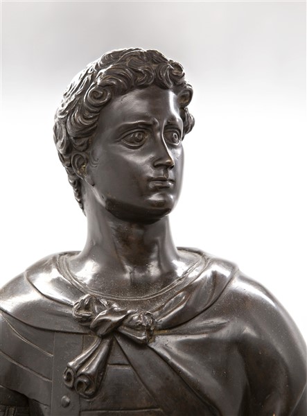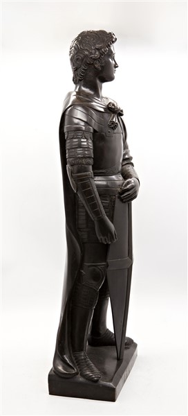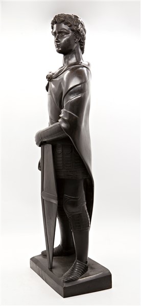 Ignoto, figura di guerriero, bronzo brunito (h cm 76) (lievi difetti)