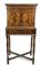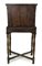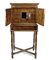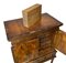 Piccolo monetiere in rovere e lastronato in radica a due corpi, parte superiore a due ante celanti otto tiretti e antina, un cassetto sottopiano, parte inferiore con cassetto nella fascia, gambe tornite riunite da traverse. Secolo XIX (cm 58x120x34) (difetti e mancanze)