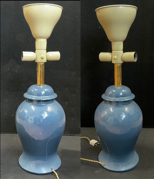 Lotto 370 | Coppia di lampade da tavolo con sostegno in porcellana in forma di potiche mono
