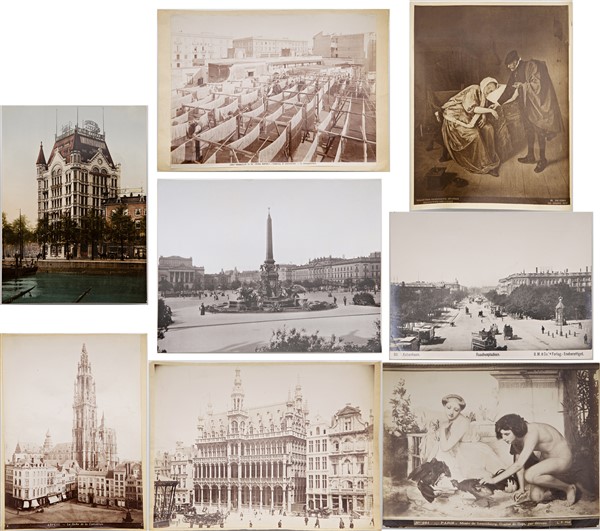 Album contenente numerose edizioni fotografiche fine secolo XIX, inizio XX raffiguranti diverse città tra le quali Siena, Bruges, Amsterdam e Monaco. Alcune a colori, diversi formati (difetti)