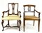 Lotto composto da due diverse poltrone in noce, una con braccioli e gambe mosse