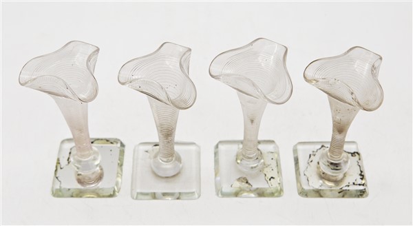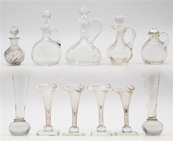 Lotto composto da varie ampolle con tappo e vasetti portafiore in vetro (h max