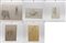 Scuola del secolo XIX, Lotto composto da cinque tecniche miste su carta raffigu