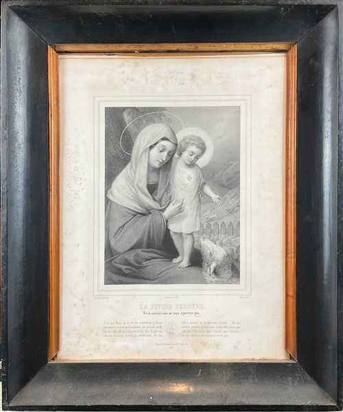 Cartone contenente numerose incisioni, stampe e riproduzioni di soggetti e misure diverse, alcune in cornice unite a una cornice dorata (difetti)