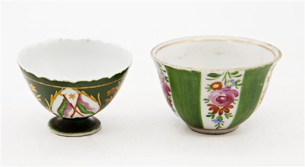 Manifatture diverse, secolo XVIII-XIX. Lotto composto da una tazza con piatto i