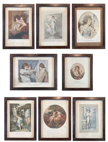Lotto 522 | Gruppo di otto stampe raffiguranti antiche incisioni con soggetti diversi (cm 2