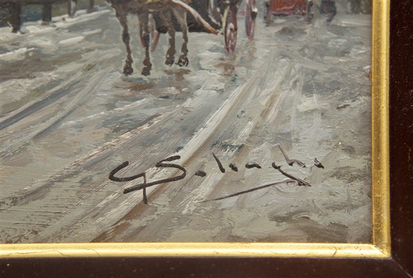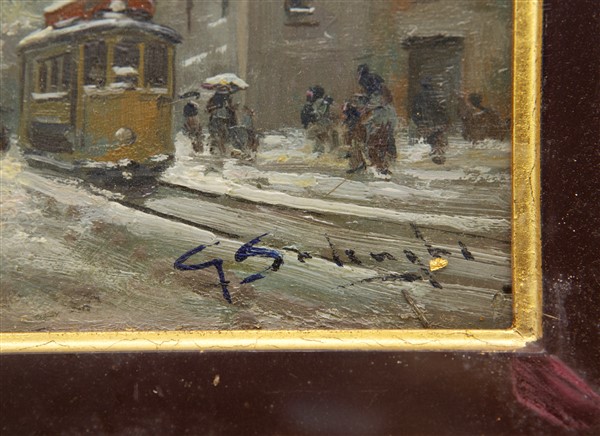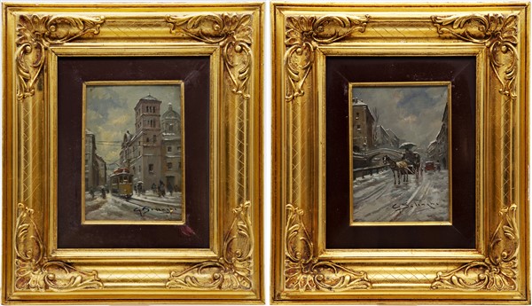 Lotto 529 | Lotto composto da due dipinti "Vecchia Milano sotto la neve" olio su compensa