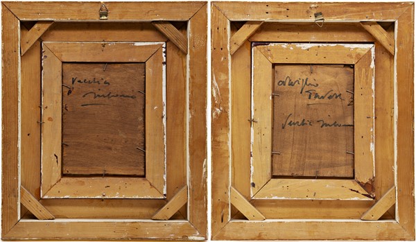 Lotto composto da due dipinti "Vecchia Milano sotto la neve" olio su compensa