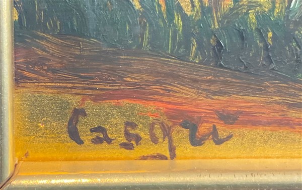 Lotto composto da due tecniche miste su masonite raffiguranti paesaggi, di auto