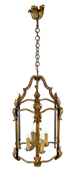 Lotto 552 | Lanterna a sospensione in metallo dorato a sezione esagonale con interno a quat