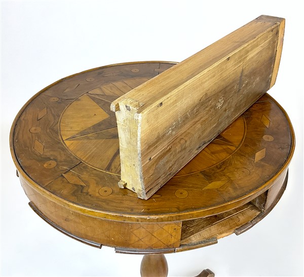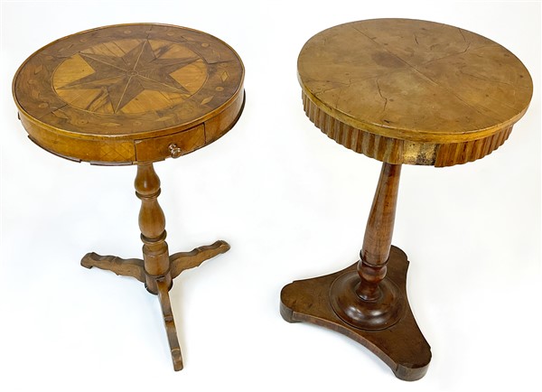 Lotto 559 | Due diversi tavolini di cui uno con piano intarsiato a stella ed un cassetto ne