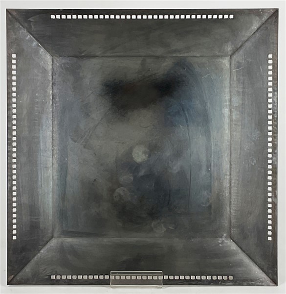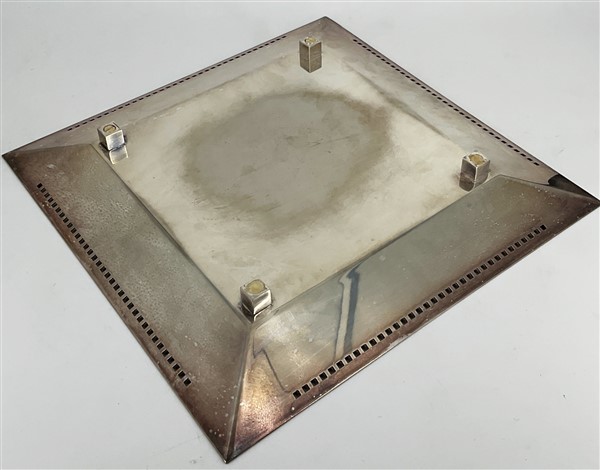 Vassoio in metallo argentato di gusto post moderno. Italia, anni '80/'90. (cm 35x35)