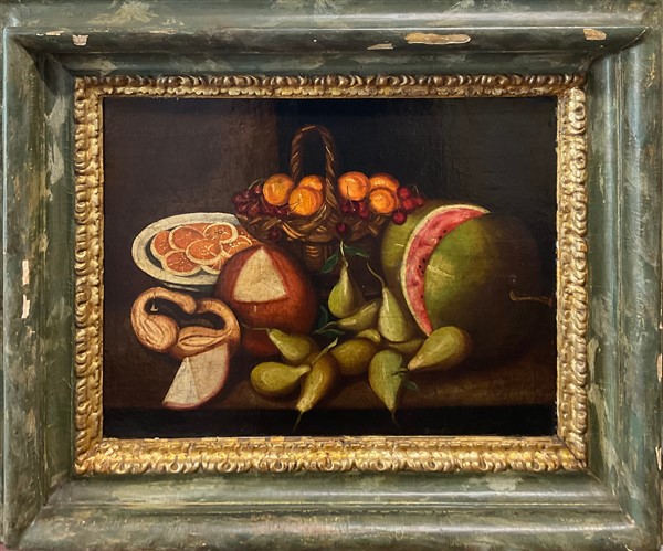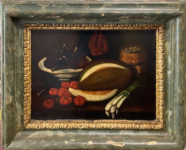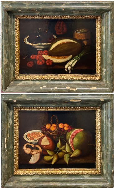 Lotto 563 | Ignoto Coppia di antichi dipinti ad olio su tela raffiguranti "Composizioni co