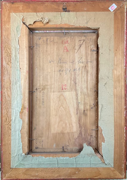 Ignoto di inizio secolo XX "Rina al lavoro" olio su compensato (cm 34x18,5) a