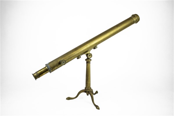 Telescopio in ottone su sostegno tripode. Inizio secolo XIX (L cm 87) (difetti)