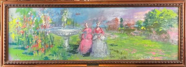 Lotto 580 | Roberto Carignani "Scena galante" pastelli colorati su carta (cm 30x96) firmato