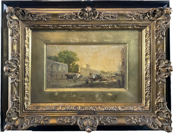 Lotto 585 | Edoardo Dalbono "Bozzetto per scorcio napoletano" olio su tavoletta (cm 10x17,5
